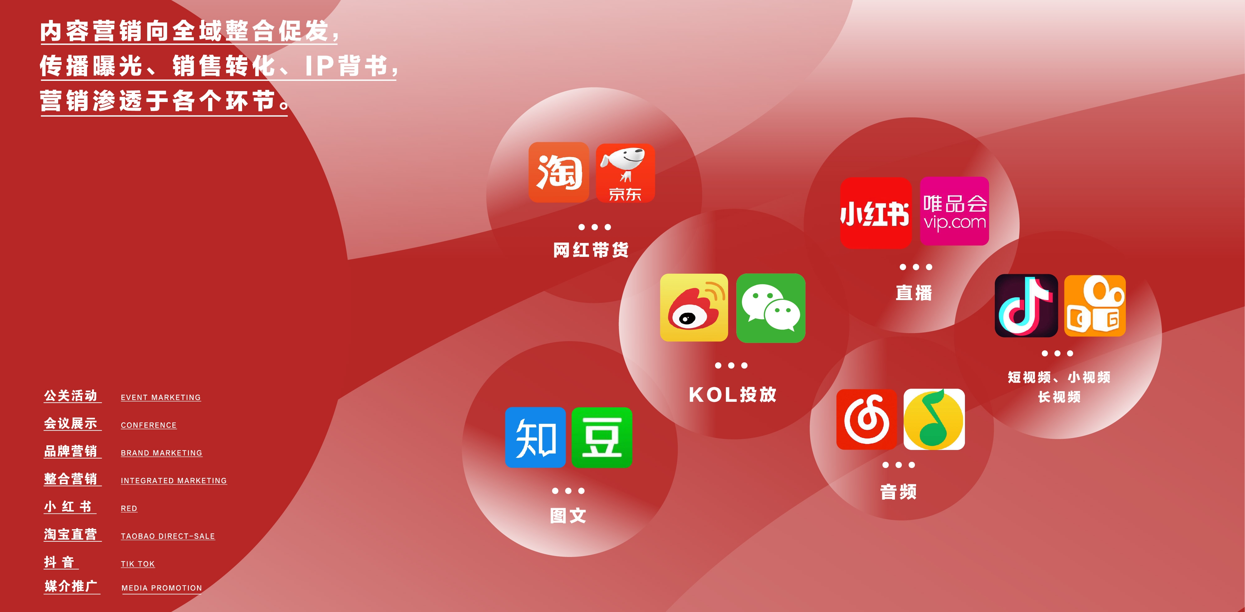 以專業、完整、高質、快捷的品牌傳播服務,幫助客戶提高知名度、增強美譽度、維護忠誠度,實現持續增長、持久發展。 以整合見長,以實效出眾,既可為客戶大規模的傳播戰役提供強有力的支持,也可根據客戶特定時期的特定需求,用單一的傳播方式實現客戶所期望的效果。